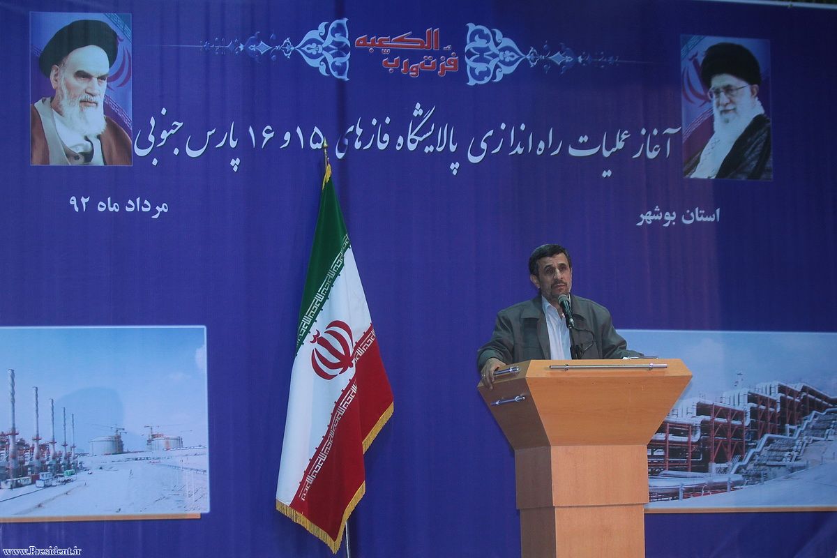 دکتر احمدي نژاد در مراسم آغاز عمليات بهره برداري از پالايشگاه فازهاي 15 و 16 پارس جنوبي: